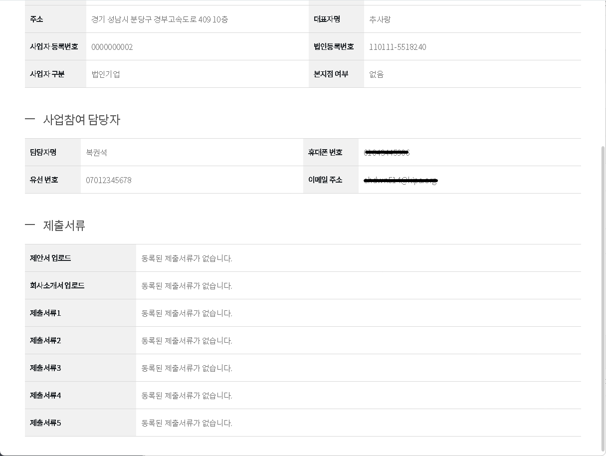 - 입찰사업의 심사과정에서는 제출서류 총 7개 조회가 가능합니다.