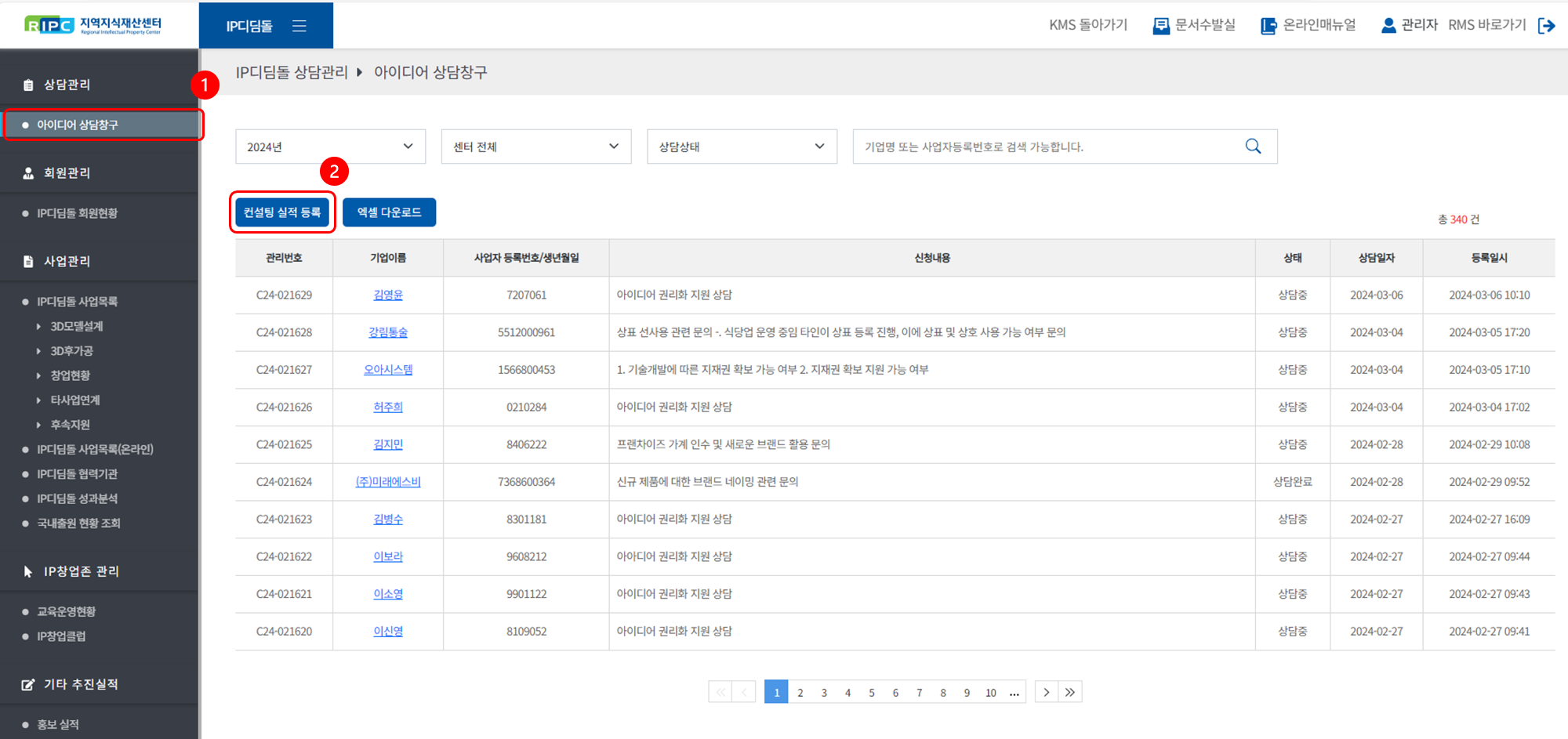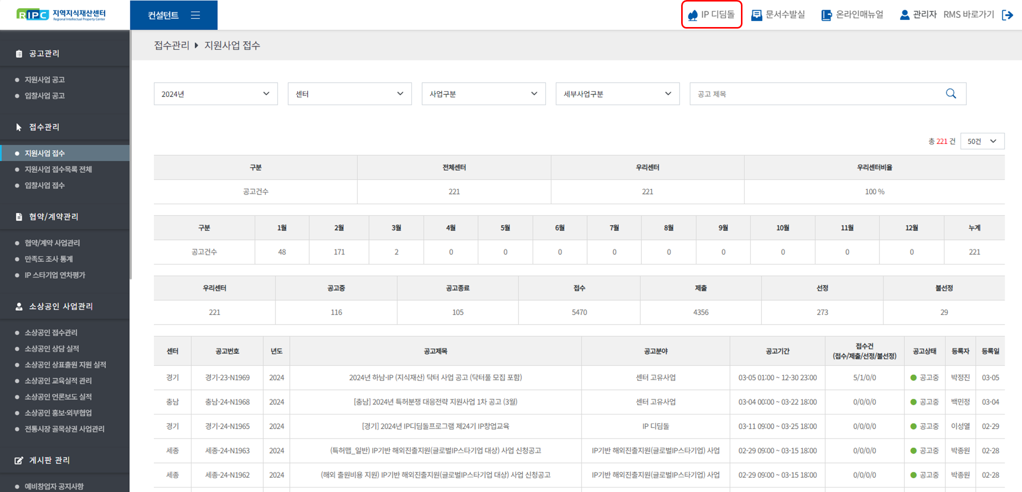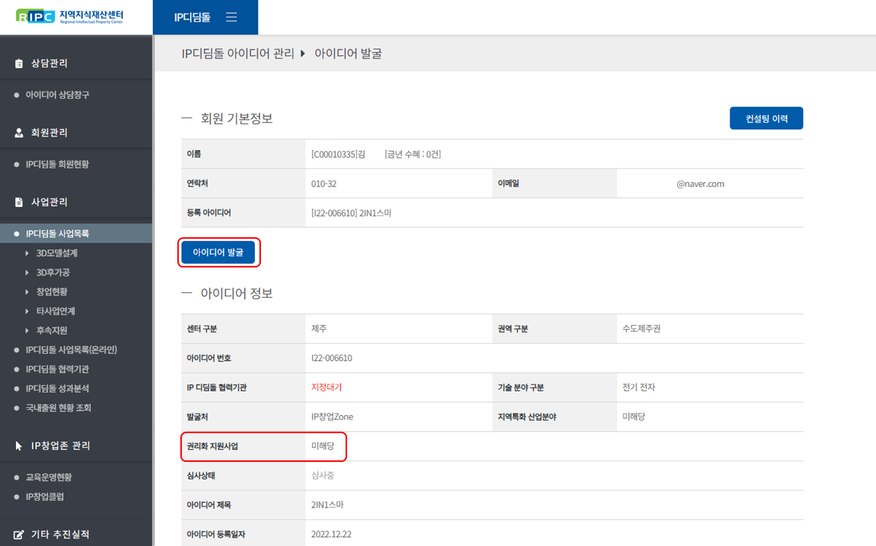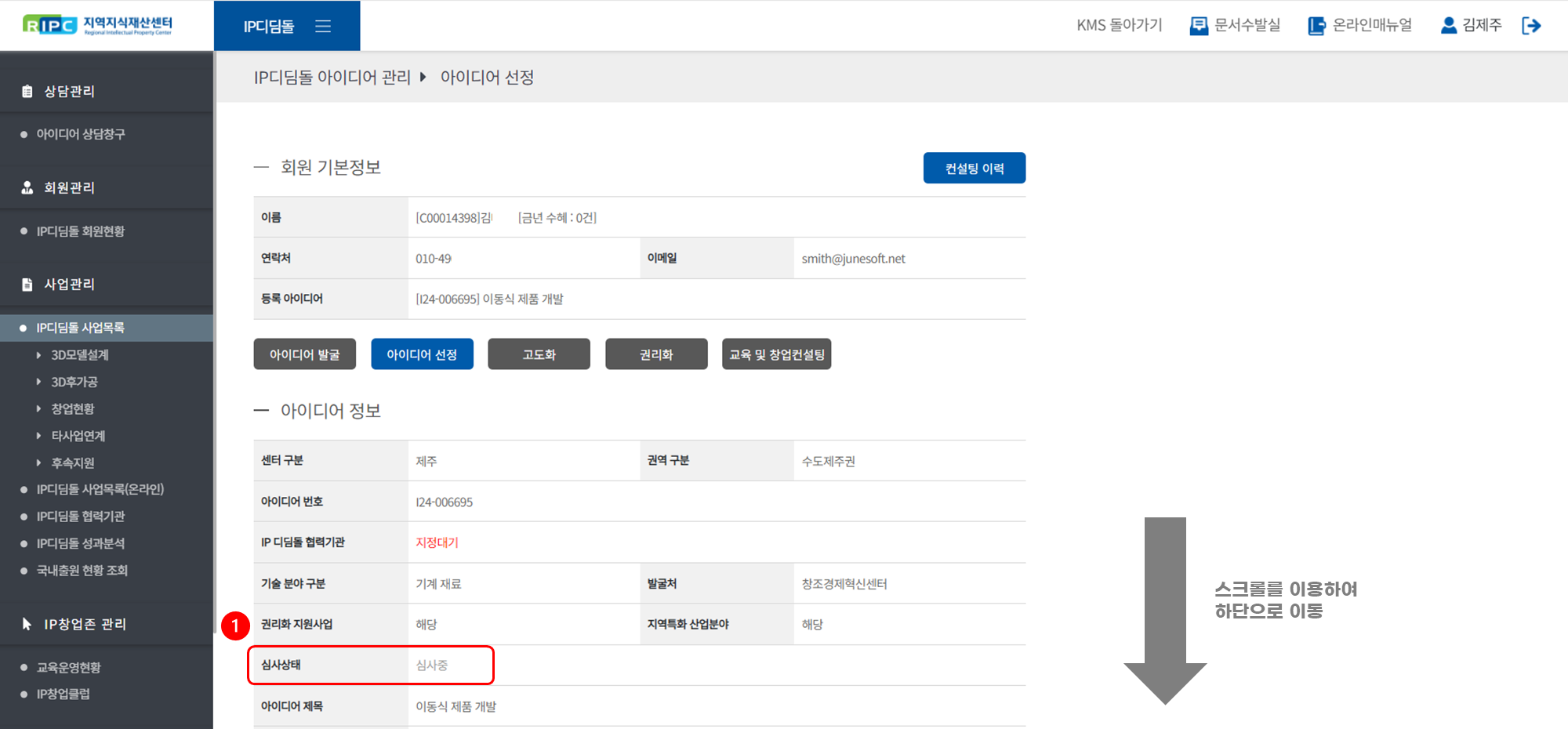 지역지식재산센터 컨설턴트 시스템에서 IP디딤돌 사업을 관리/운영하실 수 있습니다.