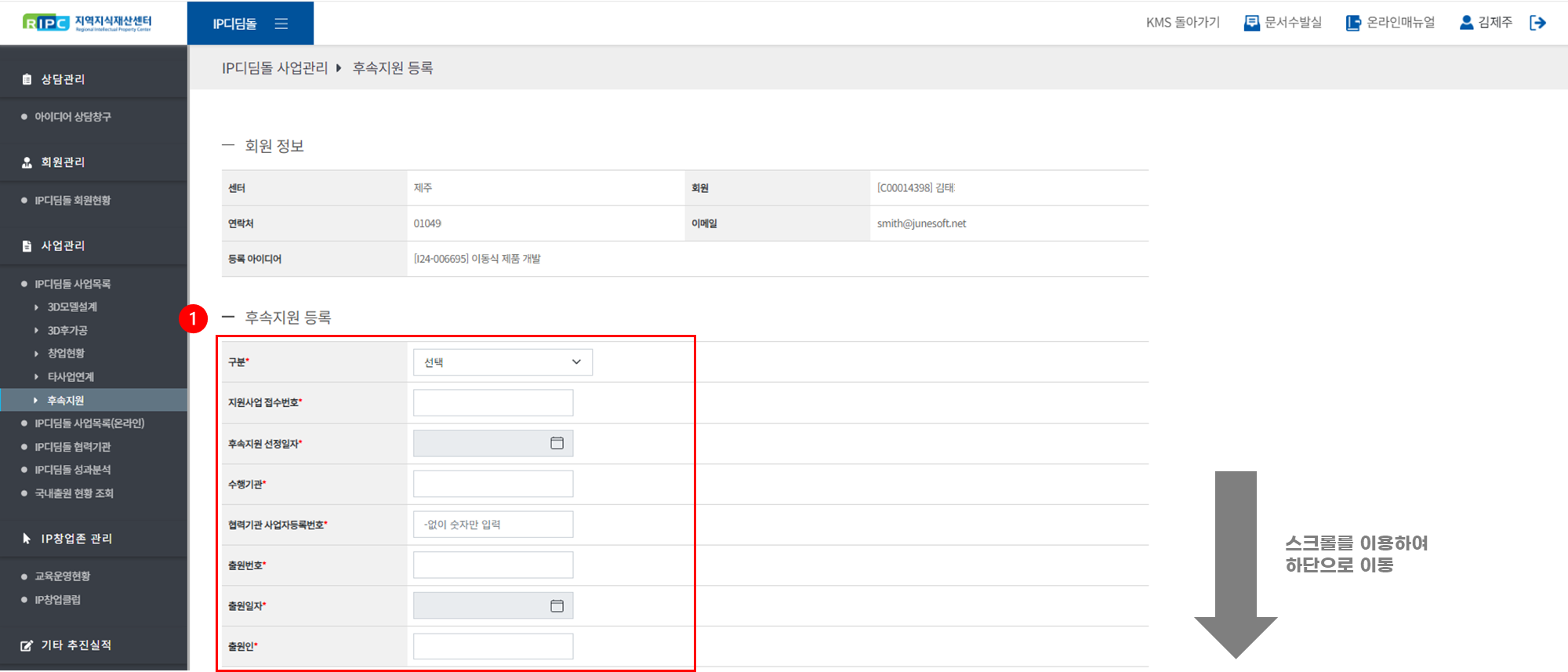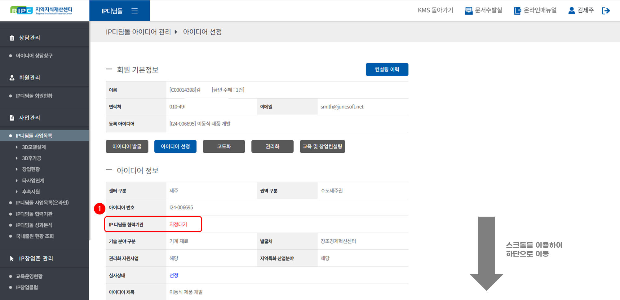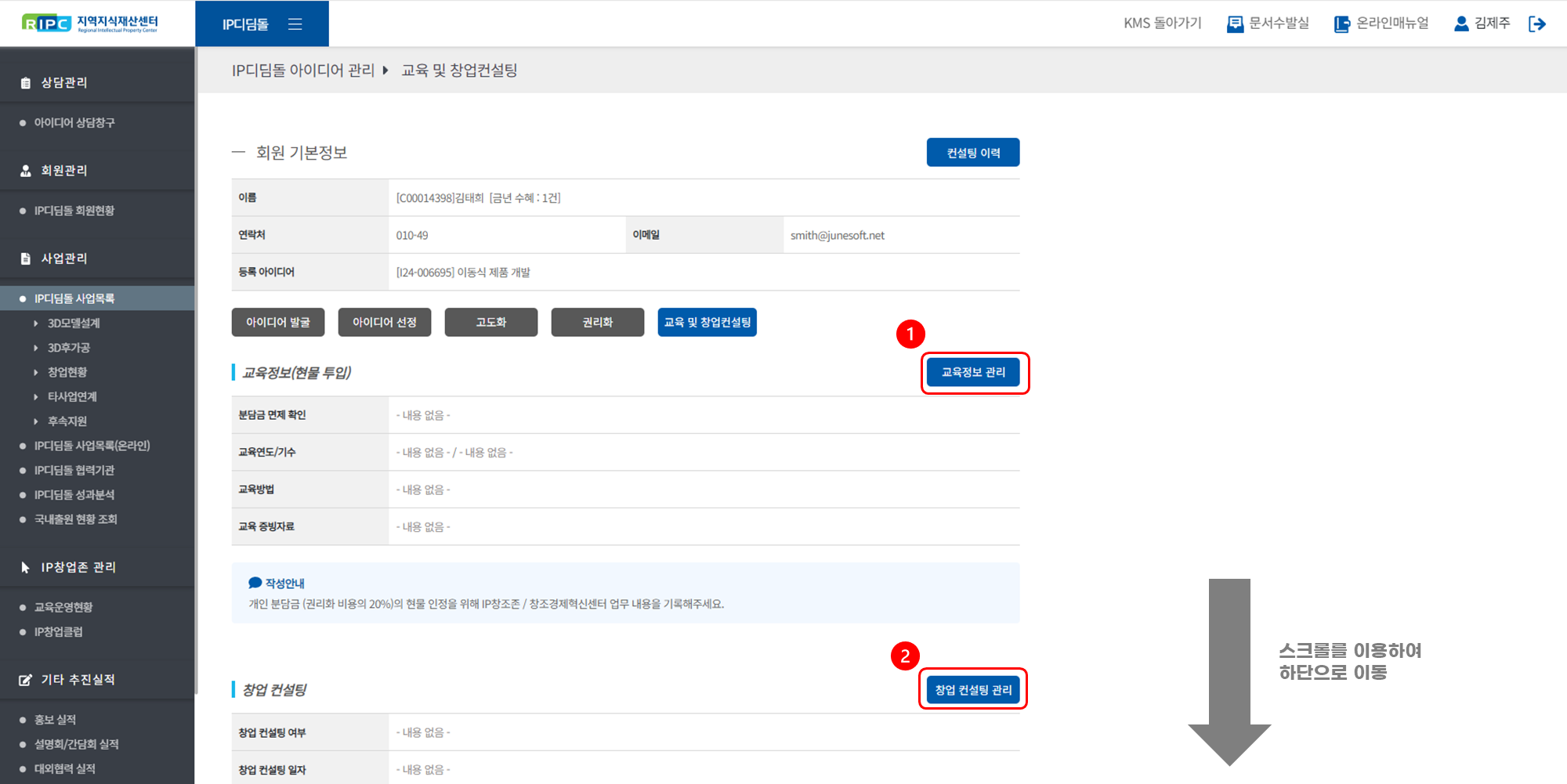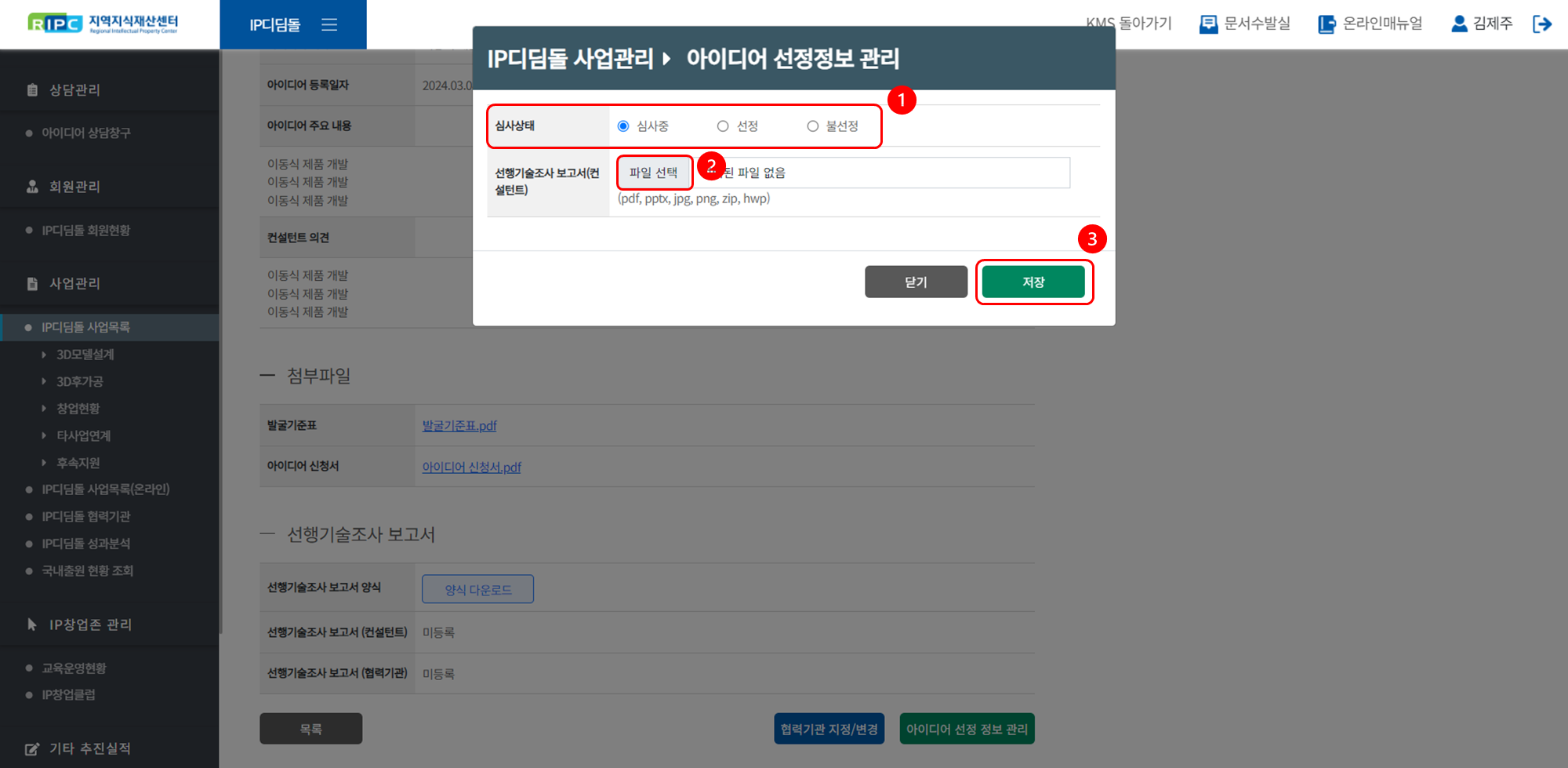 지역지식재산센터 컨설턴트 시스템에서 IP디딤돌 사업을 관리/운영하실 수 있습니다.