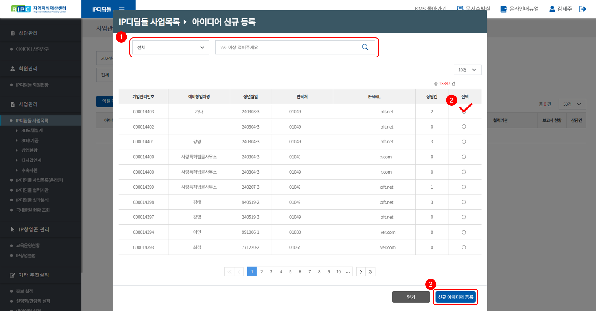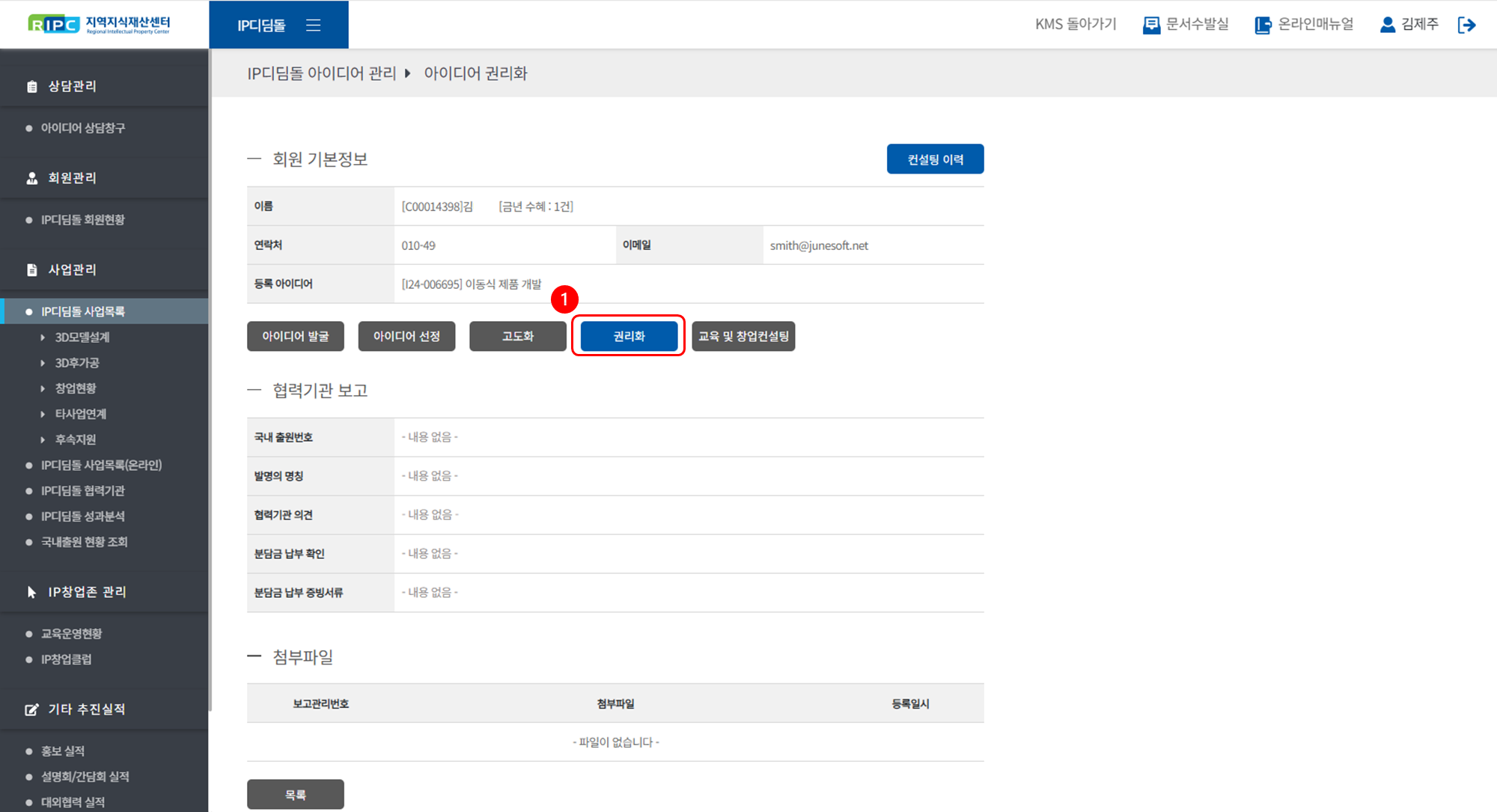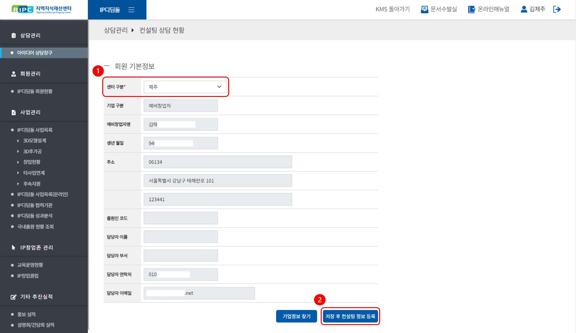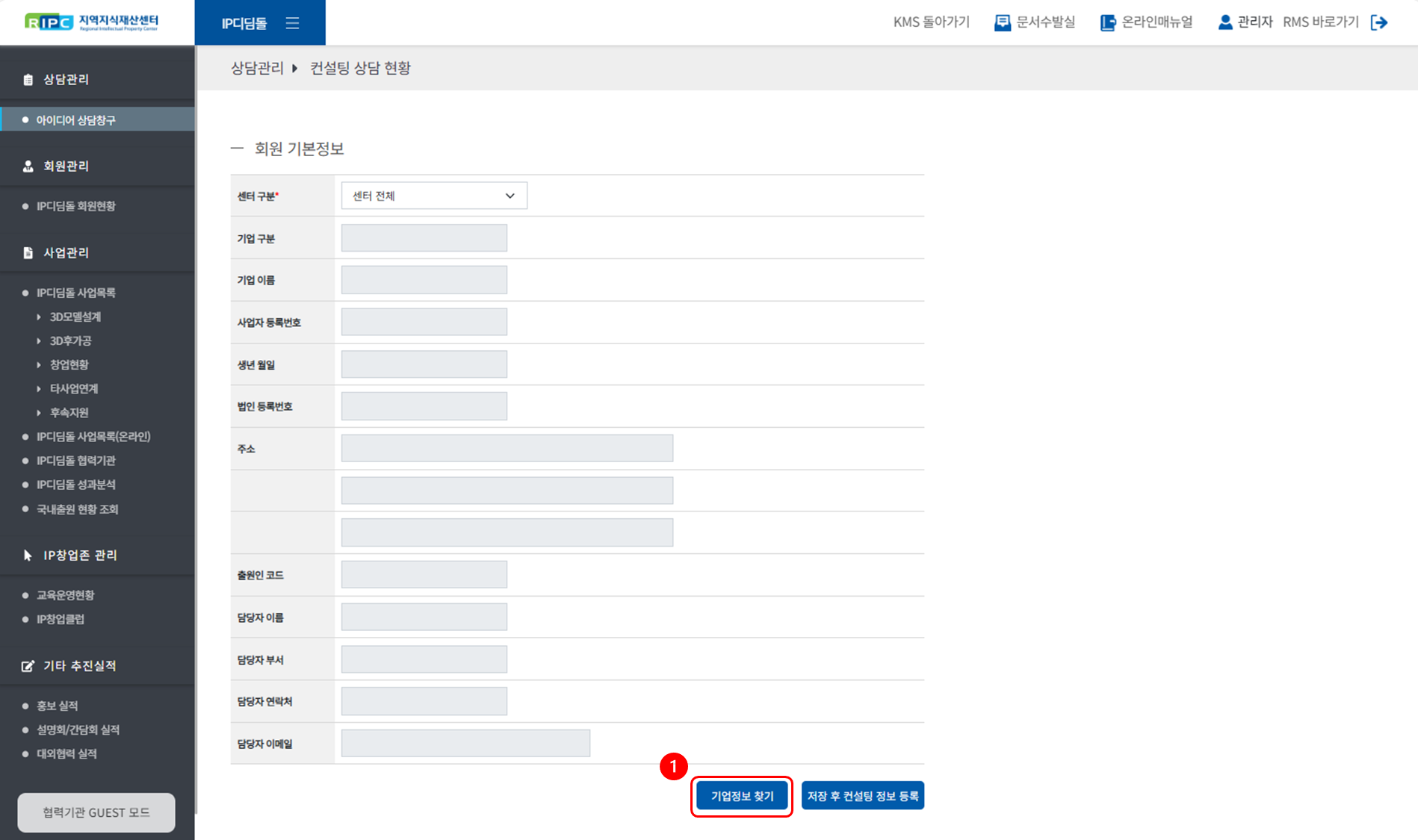 지역지식재산센터 컨설턴트 시스템에서 IP디딤돌 사업을 관리/운영하실 수 있습니다.