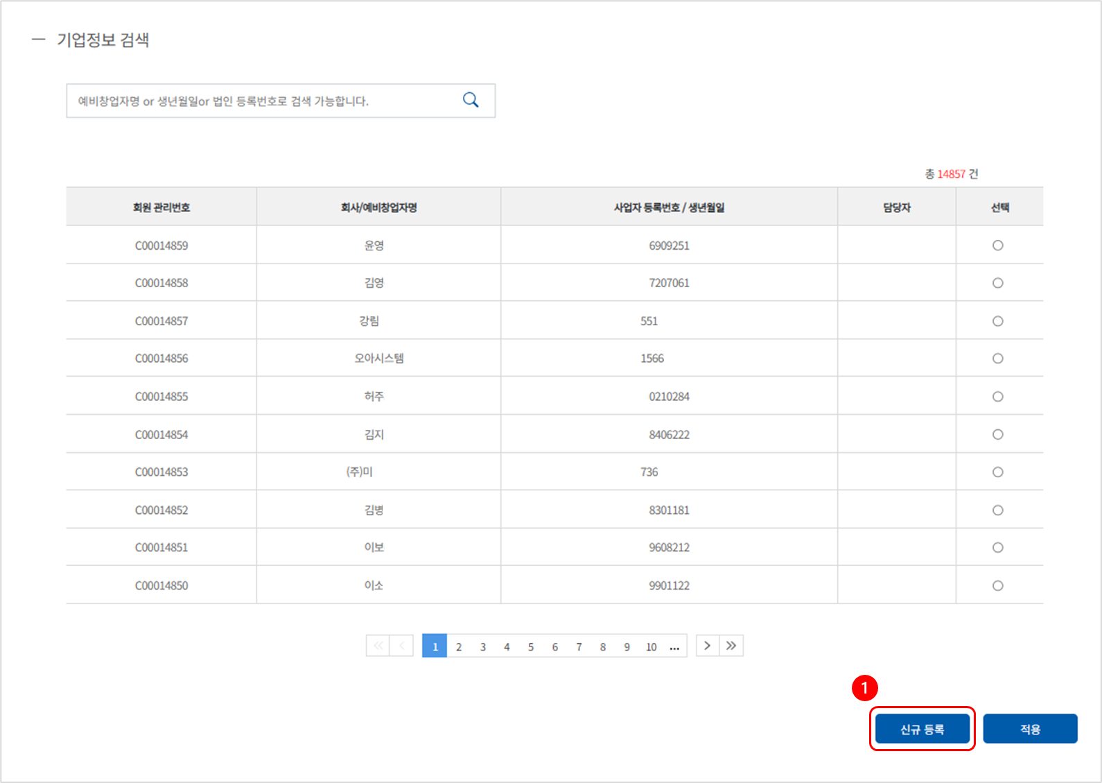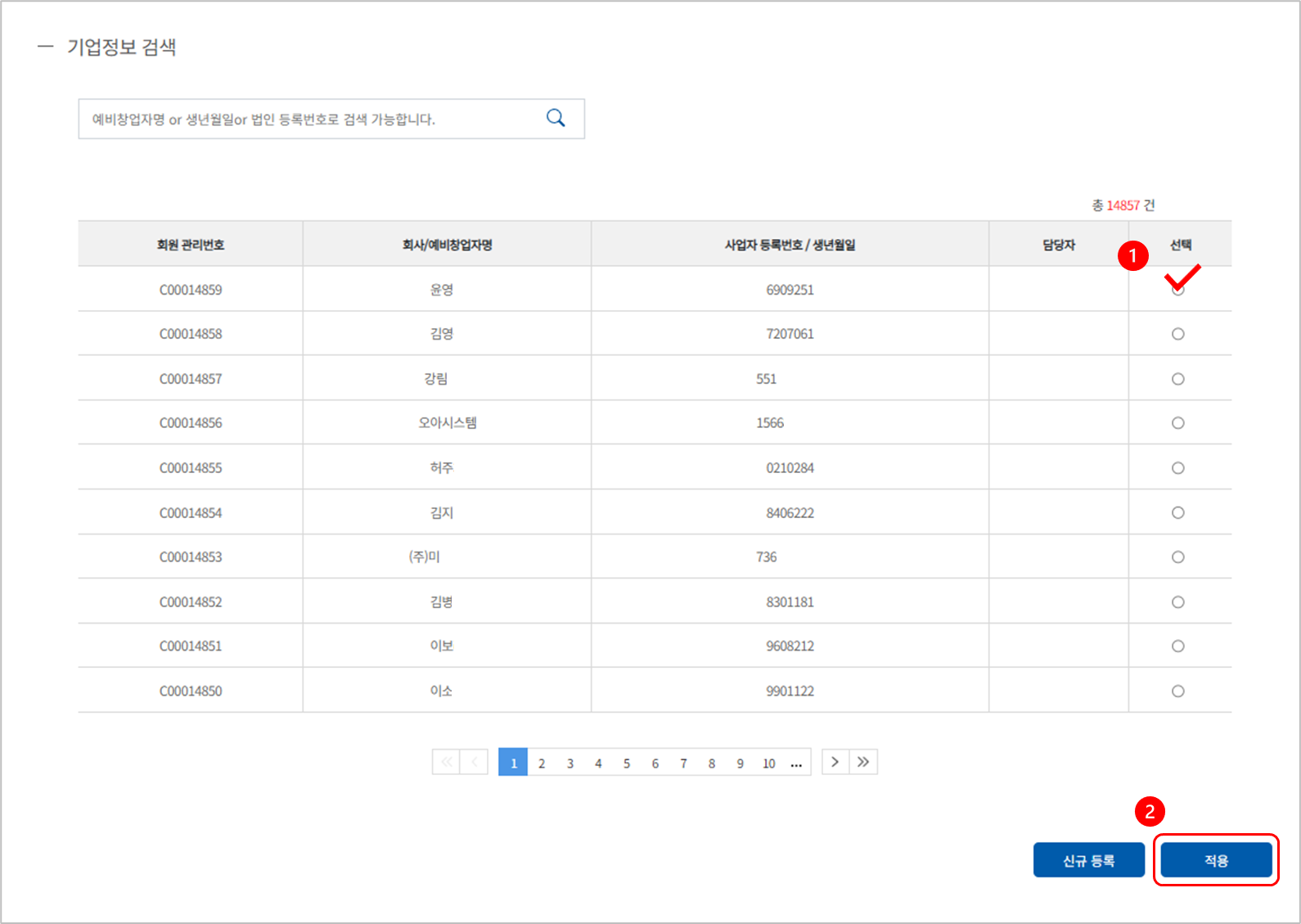 ✔️ 예비창업자명 or 생년월일 or 법인등록번호로 검색 가능합니다.