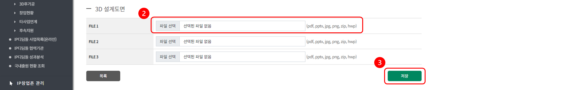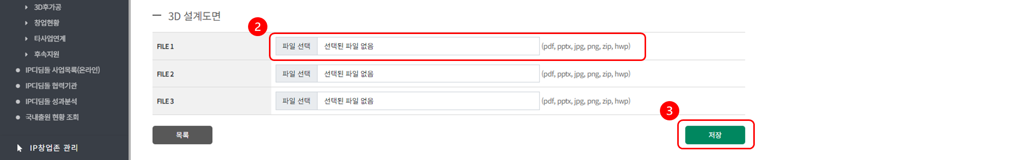 ③ 모두 입력 후 [저장] 버튼을 Click해 주시면 3D 모델설계 지원 이력이 등록됩니다.