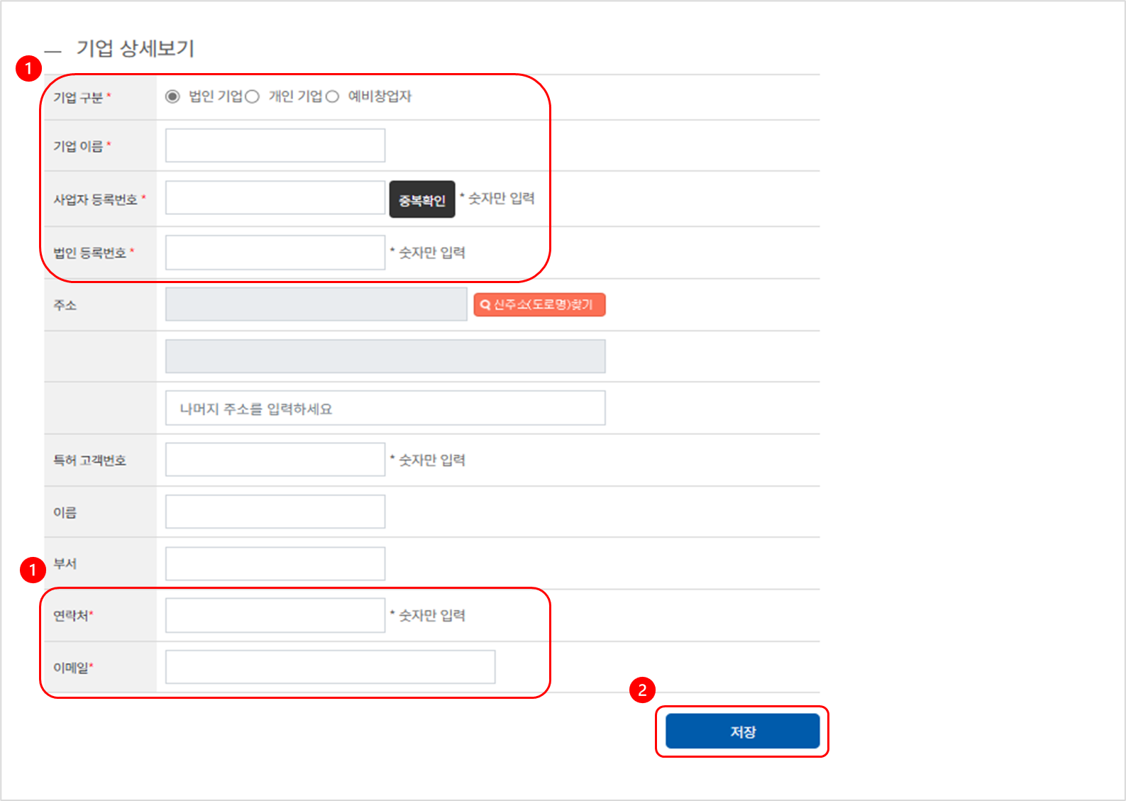 아래 두가지는 협력기관에서 작성해 주셔야 하는 항목입니다.