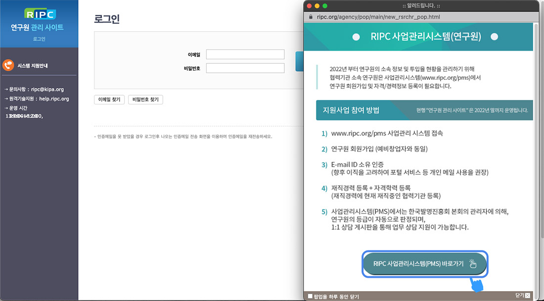 2022년 이후 연구원은 [RIPC 사업관리 시스템]을 이용하셔야 합니다.