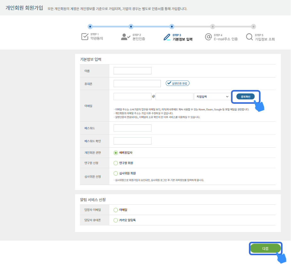 - 반드시 실명인증이 되어야 하며, 본인확인된 계정은 중복 회원가입이 불가능합니다.
